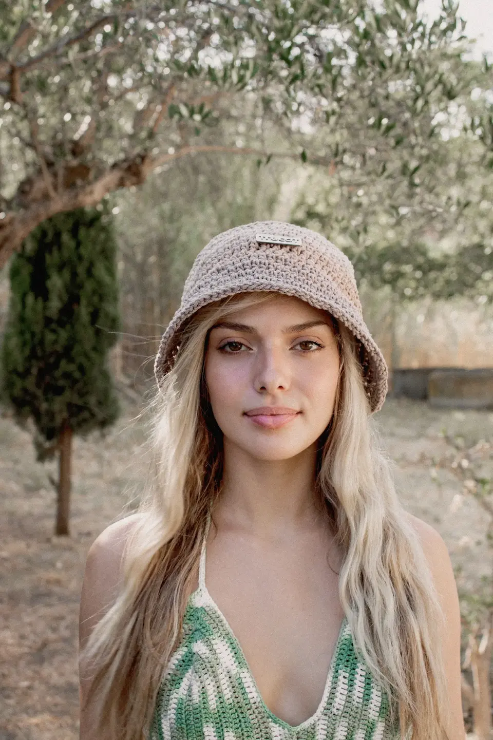 Our, entirely hand-knitted, bucket hat is made from soft but still steady yarn. Inside and stitched by hand is our Trecot woven label. A metal one is placed on front.